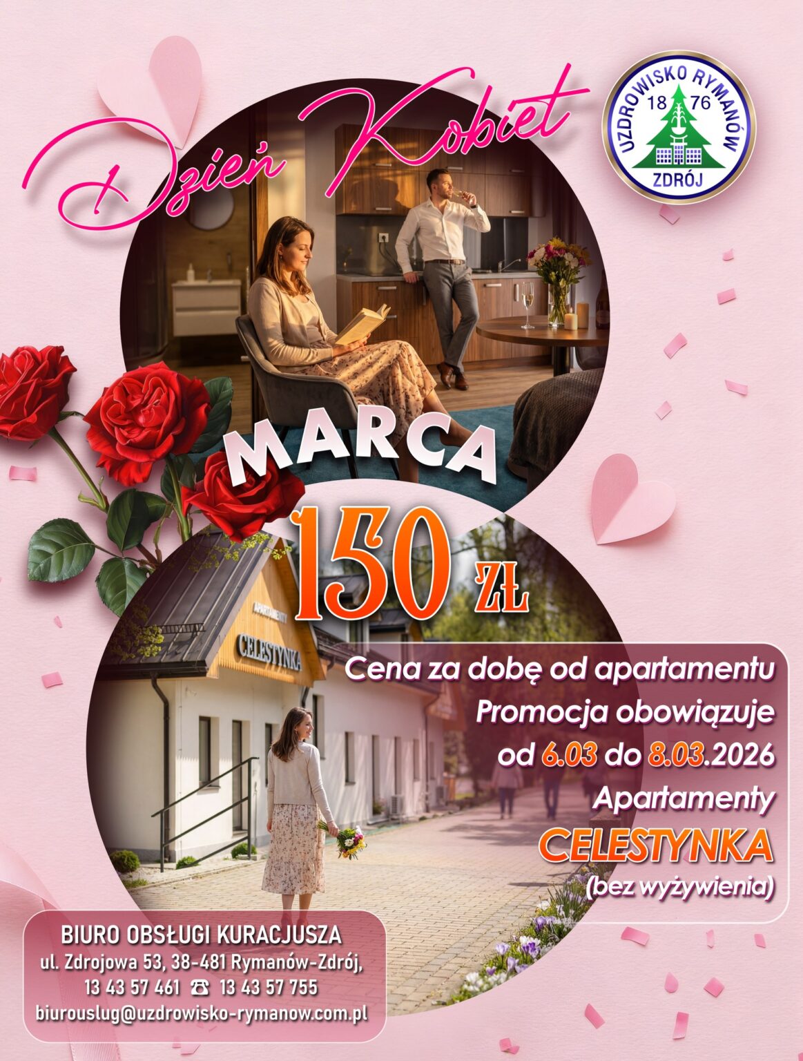 Zapraszamy do spędzenia wyjątkowego weekendu w komfortowych apartamentach – idealny sposób, by uczcić Dzień Kobiet w wyjątkowej atmosferze! Oferta:150 zł za apartament / 1 nocTermin: