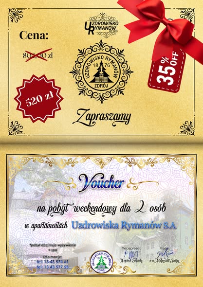 W Uzdrowisku Rymanów dostępne są vouchery pobytowe, pozwalające na wykorzystanie pobytu rekreacyjnego lub leczniczego w dogodnym terminie. To propozycja, dedykowana specjalnie dla: seniorów potrzebujących regeneracji,