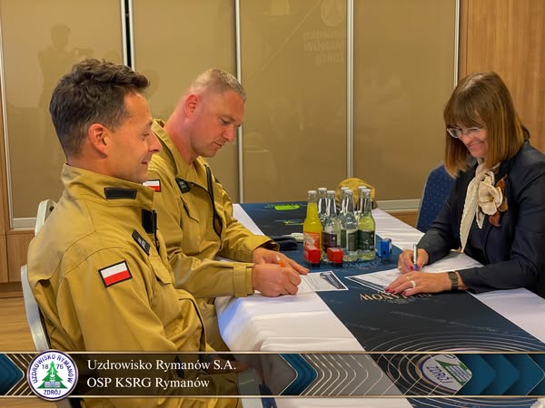 W Uzdrowisku Rymanów S.A. miało miejsce przekazanie strojów sportowych dla członków OSP KSRG Rymanów. Z rąk Prezes Zarządu dr inż. Małgorzata Szeliga, komplety odebrał Komendant jednostki Grzegorz Zawada.
