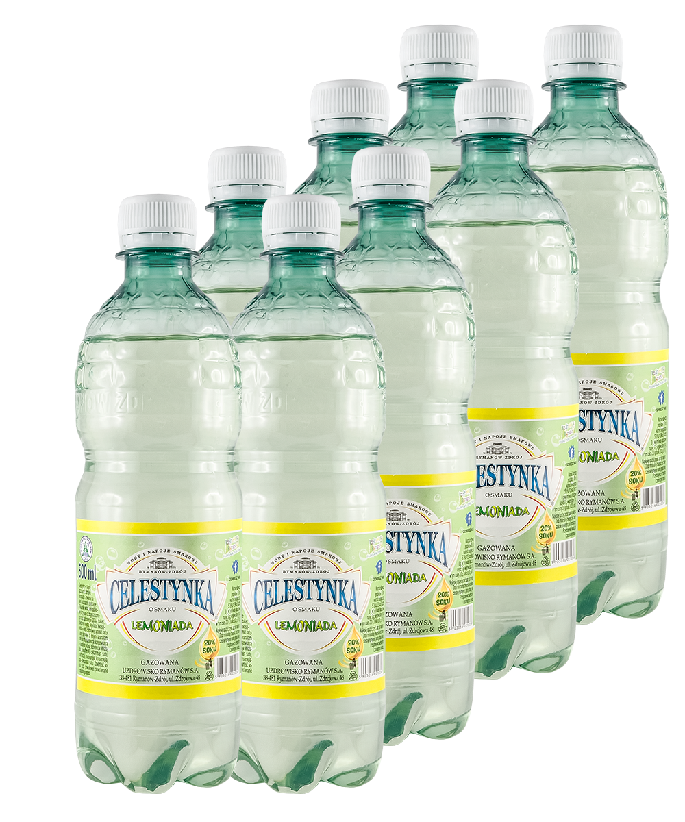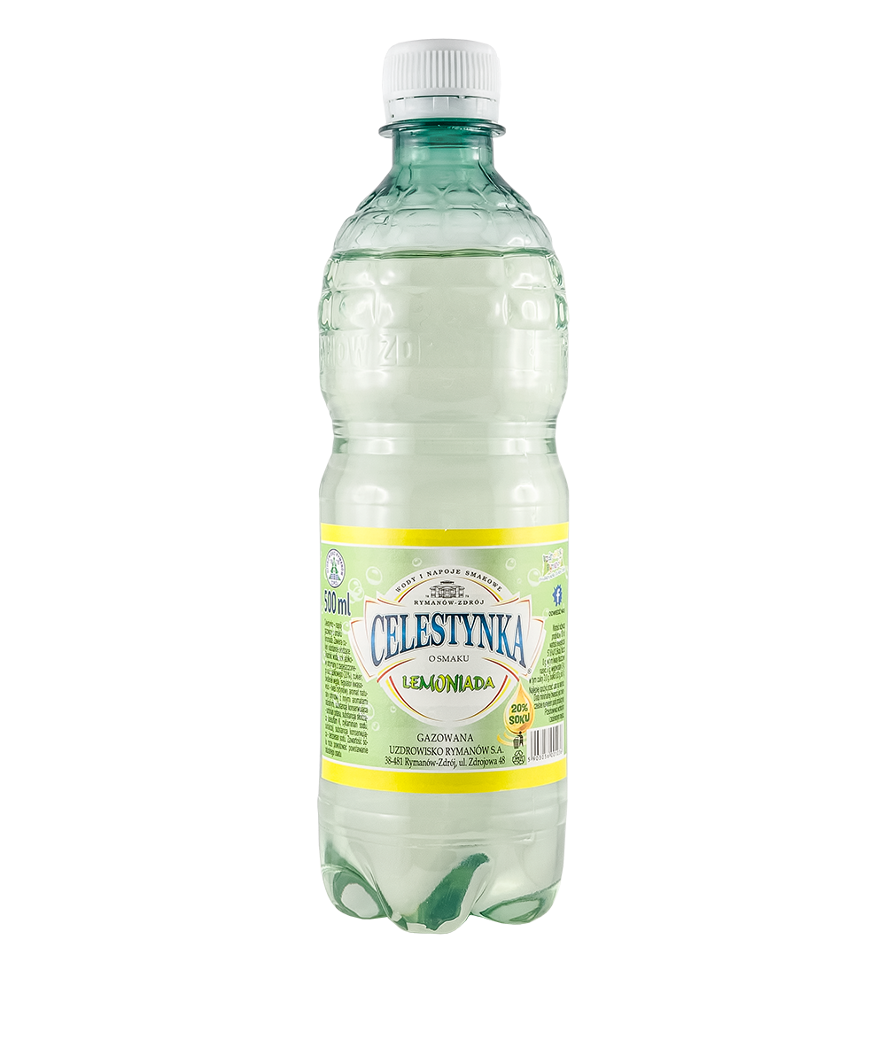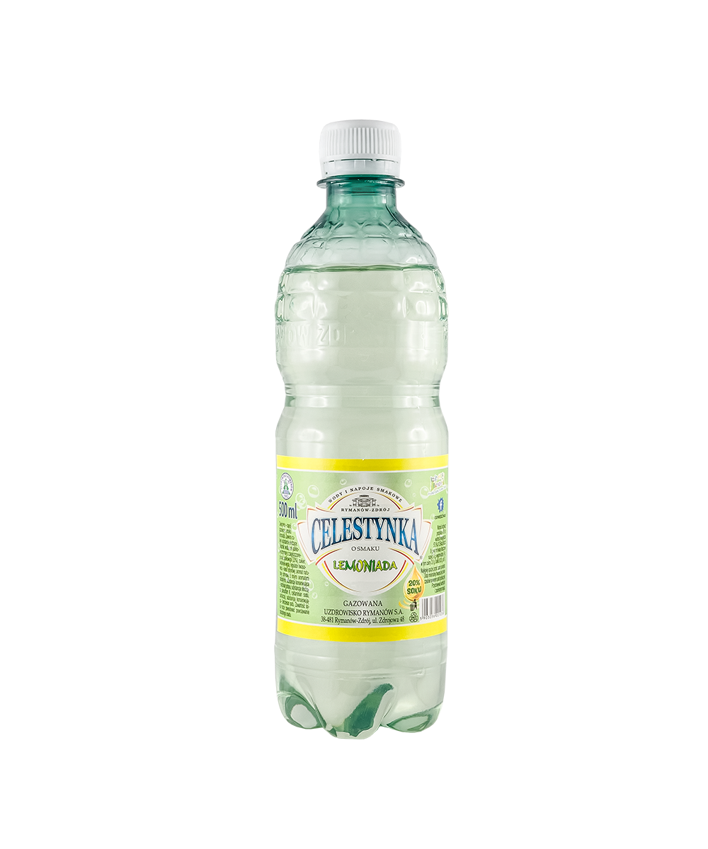 Celestynka – napój gazowany o smaku Lemoniada – butelka PET 0,5 L. Zawiera cukier i substancje słodzące. Składniki: woda, sok jabłkowy otrzymany z zagęszczonego soku jabłkowego (20%), cukier, dwutlenek węgla, regulator kwasowości – kwas cytrynowy, aromat naturalny, cytrynowy z innymi aromatami naturalnymi, substancja konserwująca – sorbinian potasu, substancja słodząca (acesulfam K, cyklaminian sodu, sukraloza), substancja konserwująca – benzoesan sodu.
