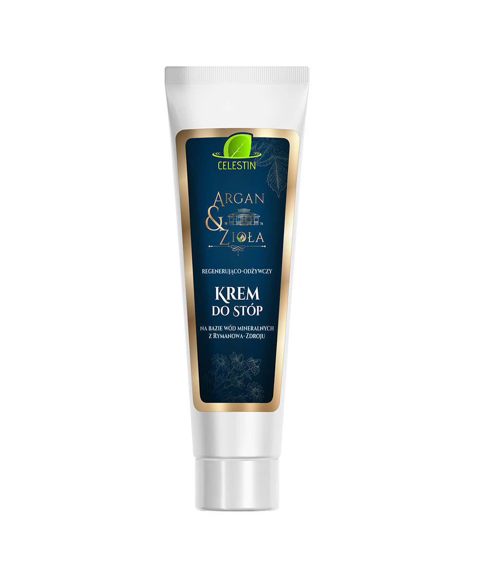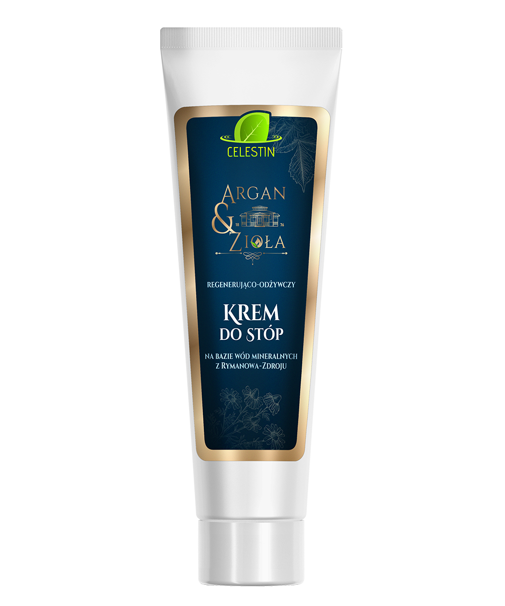 Masujący krem do stóp na bazie masła Shea z EcoCertem , olejku arganowego z EcoCertem i wód mineralnych Rymanowa Zdroju z dodatkiem polskich ziół (rumianek – działanie kojące, łagodzące podrażnienia, nagietek- działanie przeciwzapalne, pokrzywa – działanie wzmacniające, wyciąg z siemienia lnianego- działanie osłaniające, zmiękczające skórę i odżywcze, rozmaryn – działanie dezynfekujące) z dodatkiem kompleksu witamin A,E,F , który regeneruje skórę i uodparnia ją na działanie czynników zewnętrznych. Krem mocno odżywiający , niosący ulgę dla zmęczonych stóp, polecany do masażu stóp.